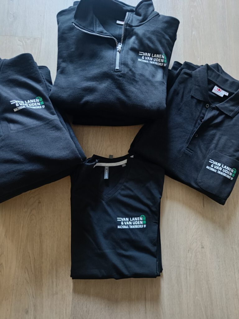 2. Geborduurde kleding, zoals poloshirts, hoodies en petten